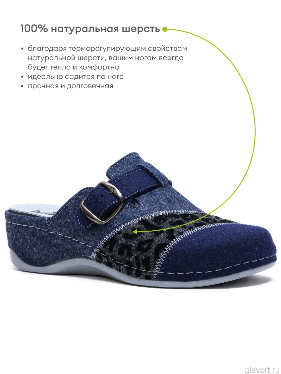 MUBB тапочки сабо женские, 759-1, синий мультиколор/ серый леопард