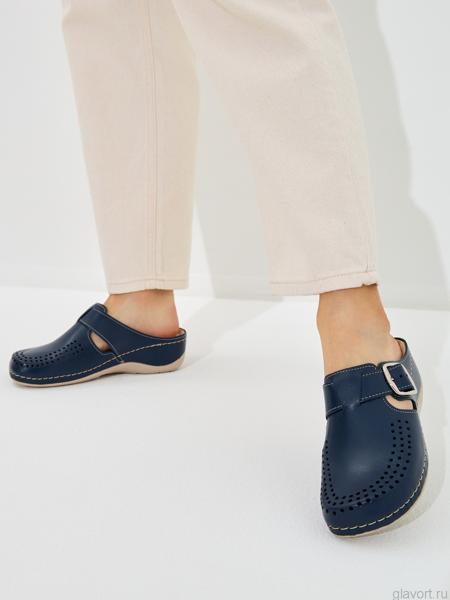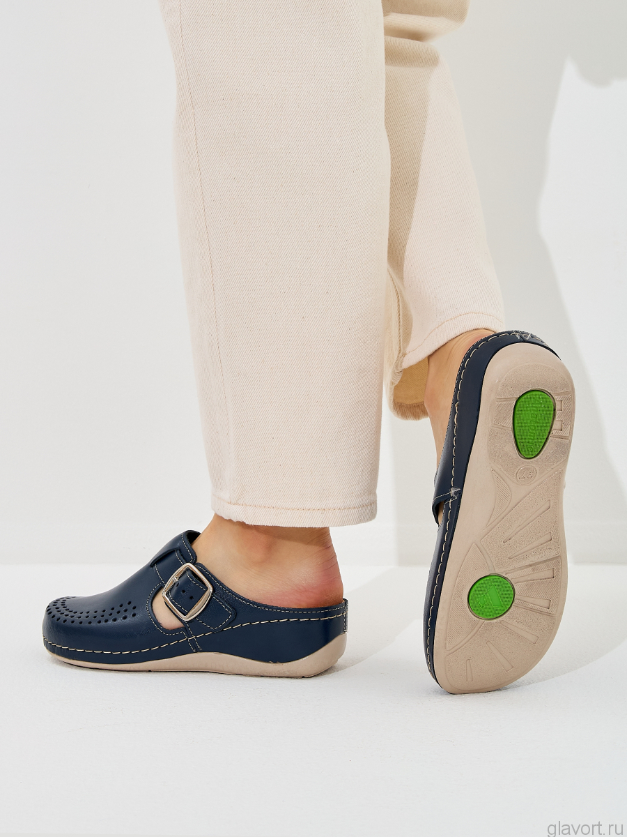 Сабо из натуральной кожи с перфорацией. Встроенная стелька с памятью формы, чтобы ноги не уставали за целый день. В стельке используется дополнительный амортизирующий слой, поэтому позвоночник и суставы получают дополнительную защиту от ударных нагрузок.